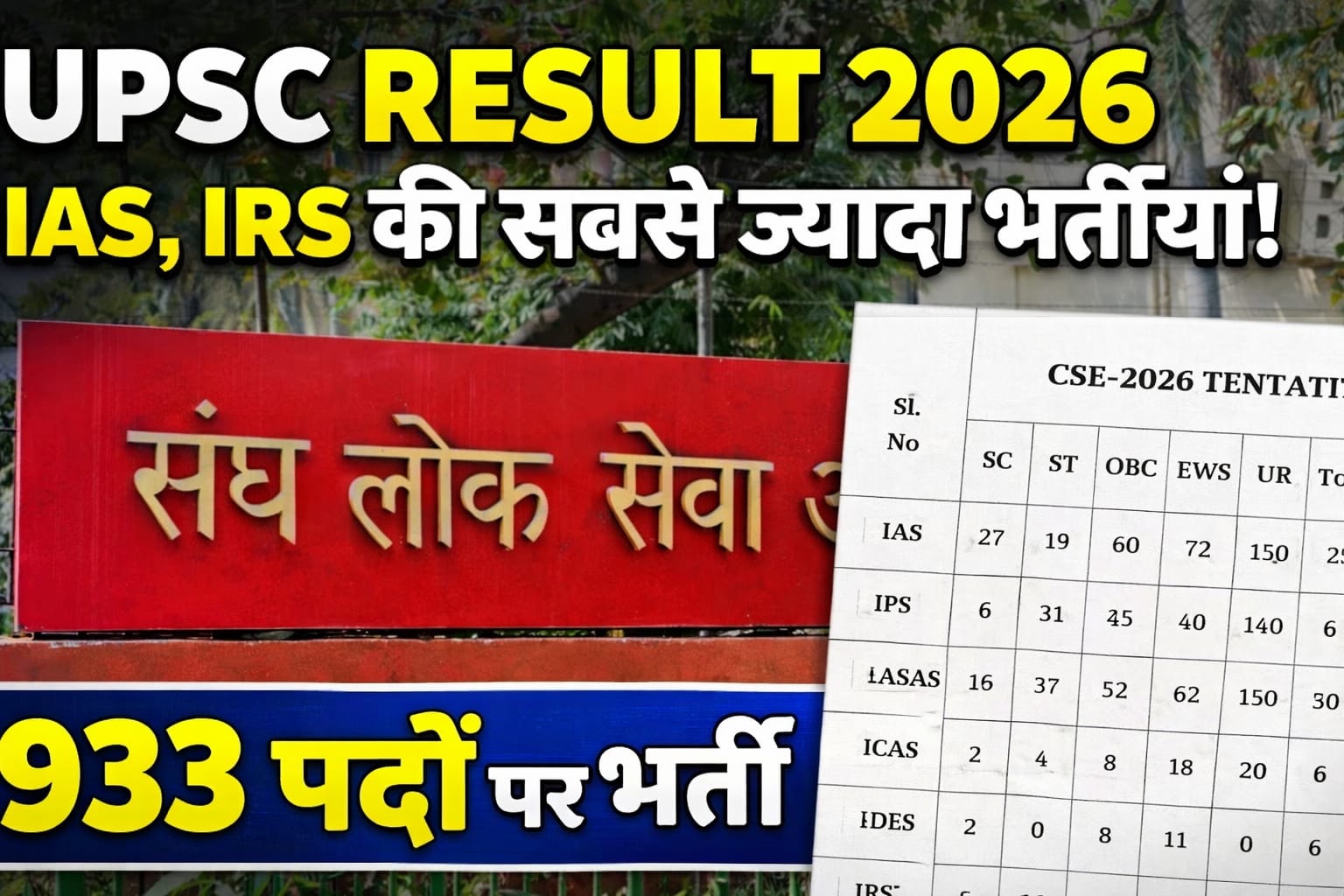 UPSC CSE 2026 Vacancy: सिविल सेवा परीक्षा में 933 संभावित पद, IAS-IPS सहित पूरी सेवा सूची