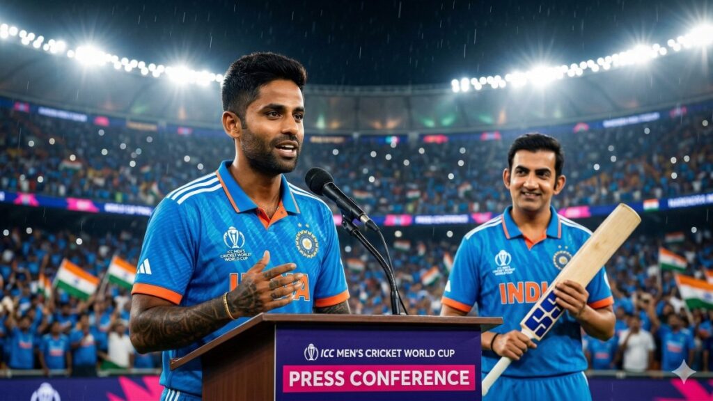 आईसीसी मेन्स ICC Men’s T20 World Cup 2026 अपने अंतिम और सबसे रोमांचक चरण में पहुंच चुका है। टूर्नामेंट का फाइनल मुकाबला भारत और न्यूजीलैंड के बीच खेला जाएगा। इस बड़े मुकाबले से पहले भारतीय टीम के कप्तान Suryakumar Yadav ने प्रेस कॉन्फ्रेंस में टीम के ड्रेसिंग रूम का माहौल और टीम की रणनीति को लेकर कई दिलचस्प बातें साझा कीं।